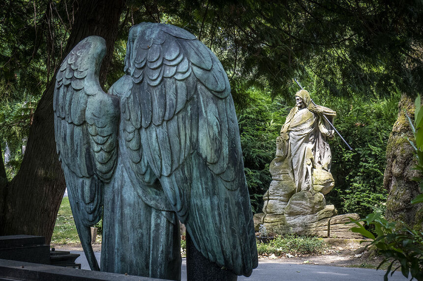 El Cementerio de Colonia, Melaten, es el cementerio central de la ciudad y el que mayor número de tumbas alberga: supera las 60.000 en sus 435 hectáreas. El nombre de Melaten proviene por haber estado ubicada en ese mismo lugar una leprosería durante el siglo XIII. La escultura funeraria alemana busca honrar y recordar al difunto con estatuas artísticas alegóricas de la vida y la muerte.