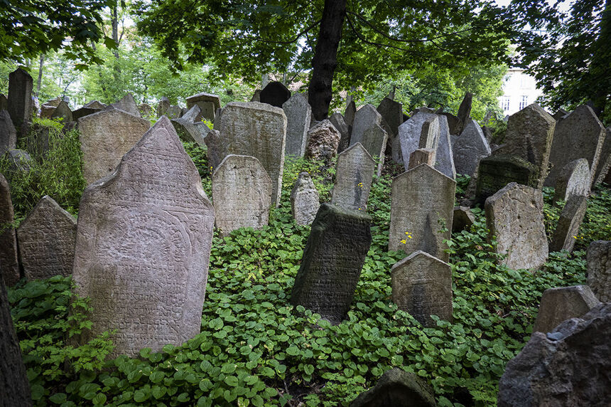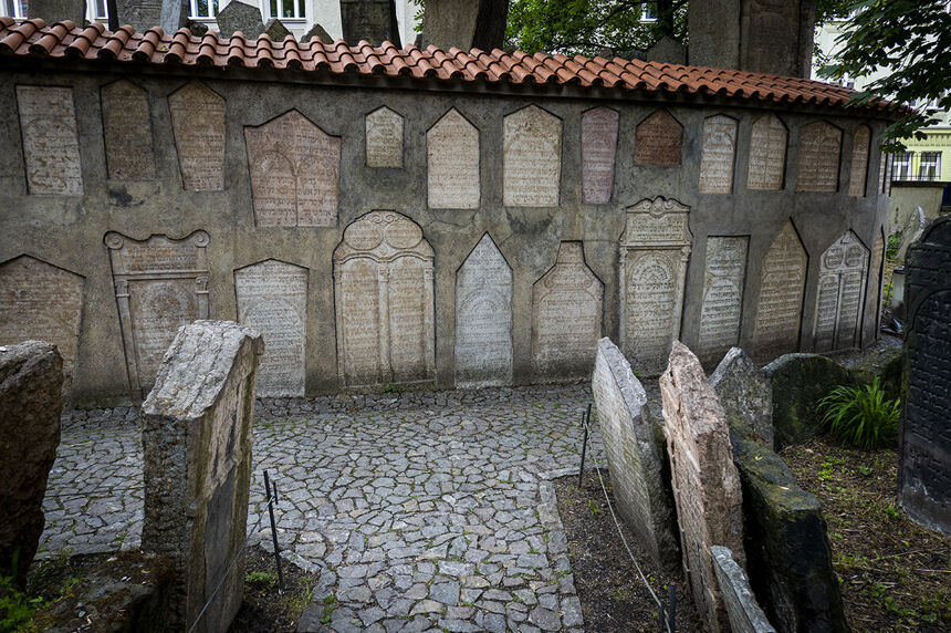 El antiguo cementerio judío de Praga fue usado desde el siglo XV hasta 1787. Se estima que descansan en él más de 100.000 judios. Por falta de espacio se fueron enterrando unas tumbas encima de otras hasta un total de 12 capas de tierra.