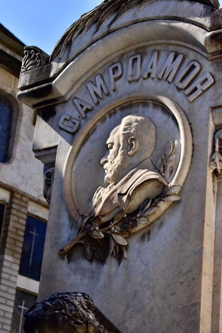 Este decimonónico mausoleo fue creado en 1909, costeado por los herederos de Campoamor, que había fallecido en 1901, en el reposan también los restos de su esposa Guillermina O'Gorman, fallecida en 1890.