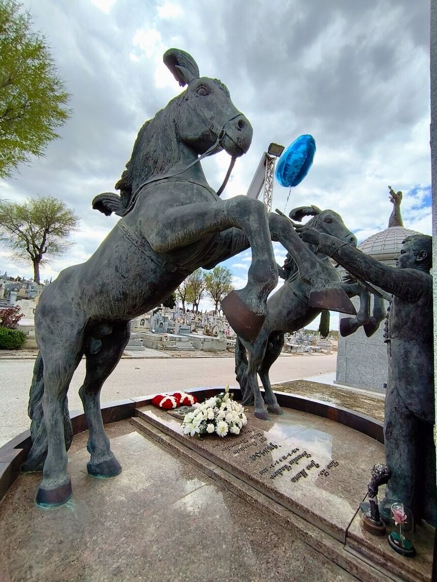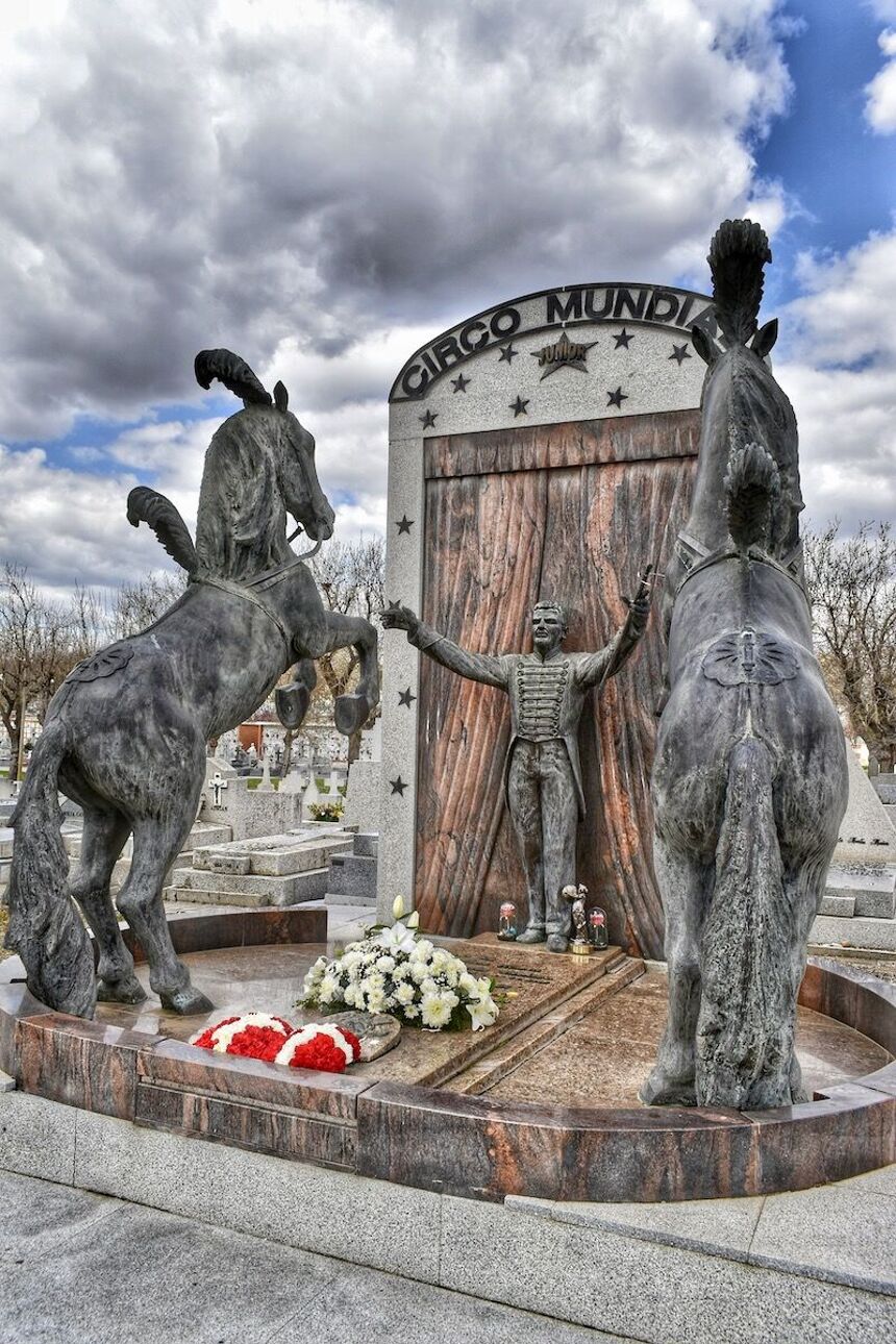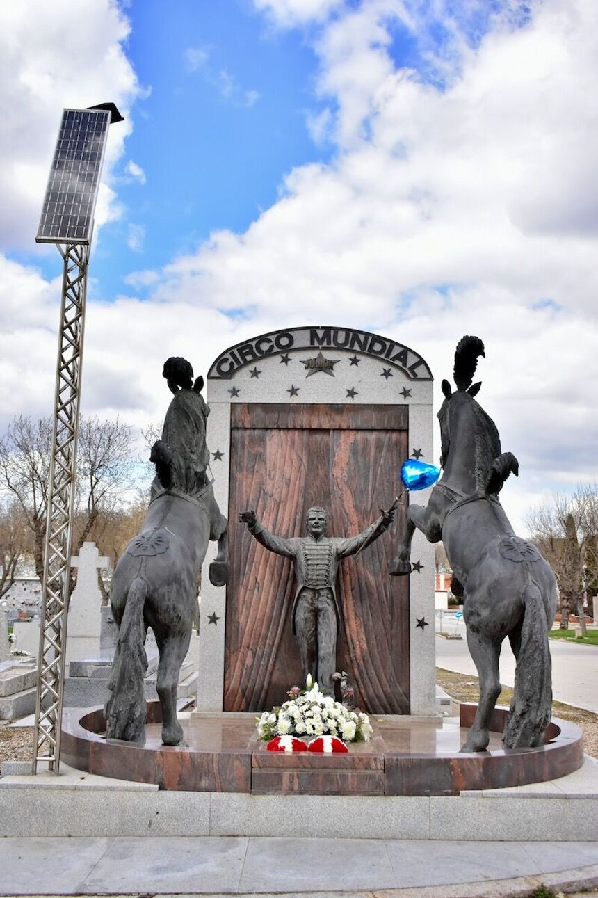 Su mausoleo donde está representado él con dos caballos con el fondo del Gran Circo Mundial, es obra del artista Eduardo San Bernardo. A los pies del domador le acompaña el trofeo del Festival Internacional del Circo y como curiosidad su lápida reza “Ilmo. Sr. …” y es frecuente encontrar en ella pequeños muñecos o elementos infantiles.