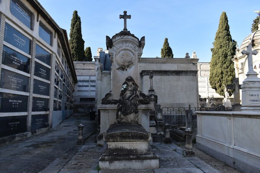 Esta sepultura se encuentra en el cementerio de la Almudena de Madrid, en la zona conocida como Cementerio de Epidemias, una zona inaugurada prematuramente en 1884, como cementerio provisional, cuando aún estaba en construcción la necrópolis, para dar cobertura inmediata a los enterramientos por la epidemia de cólera.