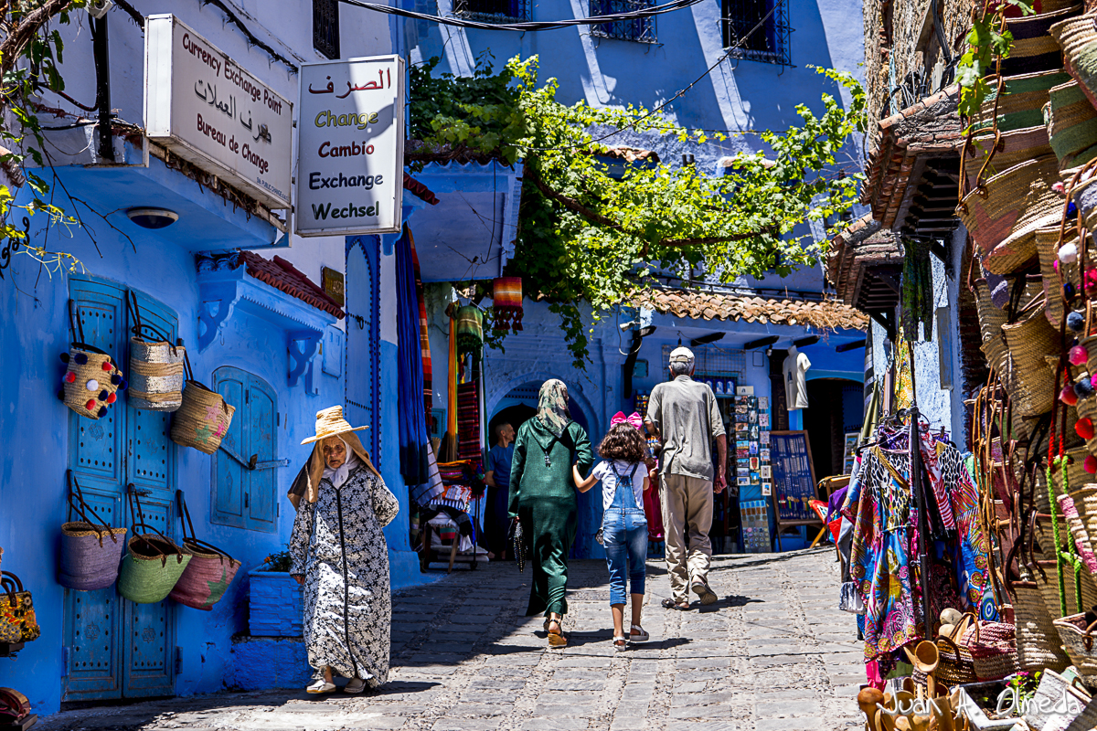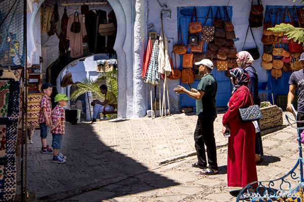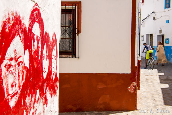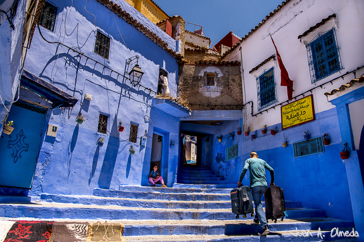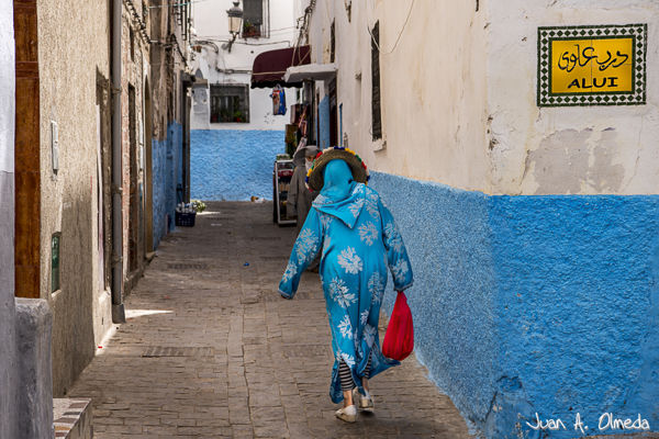 Es el trabajo de unas vacaciones familiares en el norte de Marruecos en las ciudades de Tánger, Tetuan, Chefchaouen y Asilah. Destacar la luz y el color que marcan las calles de sus medinas, así como los mercados, cafés, vida nocturna y playas. Las costumbres de su población, tan diferentes a las nuestras me incitaron a fotografiar por ejemplo cafés sólo con hombres y un parque únicamente con mujeres con sus hijos. He escogido imágenes con fuerte dinamismo y vitalidad de sus ciudades. Cómo curiosidad la dificultad de fotografiar mujeres ya que se tapan en cuanto ven una cámara o inician una viva discusión.