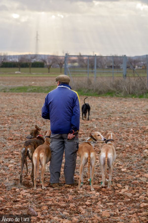 "La caza de galgos no se caracteriza por obtener el mayor número de piezas, sino por presenciar una bonita carrera de una collera de galgos tras la persecución de una brava liebre, que intenta escapar jugándose la vida tras las garras de los ansiados galgos, los que a su vez intentan atrapar la liebre para cobrarla a sus dueños. Hay veces que la atrapan y hay veces que escapa , siempre gusta que los galgos atrapen la liebre por el esfuerzo tan grande que hacen tras su persecución , es meritorio , pero si escapa tampoco pasa nada, incluso viene bien que de vez en cuando escapen , la liebre que escapa está ahí para poder presenciar otra espectacular carrera de Galgos!"
