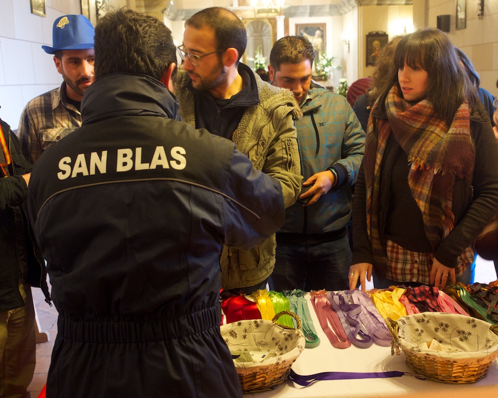 Las gargantillas, unas 3200, se venden durante el sábado y el domingo; son de distintos tamaños y colores y el dinero recaudado se destina a la Hermandad de San Blas. Estas gargantillas se pasan por el manto del Santo para representar su protección.